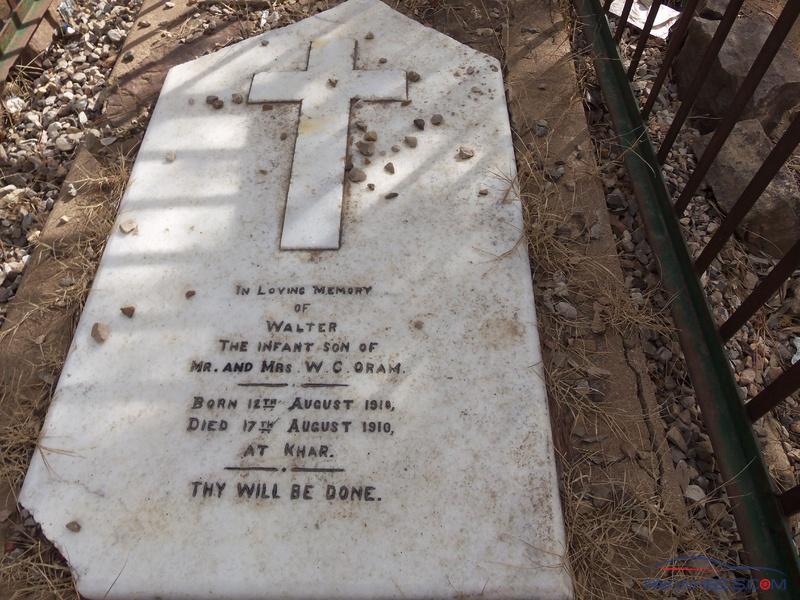 3- ” In loving Memory of Maud Evelyn wife of Captain M. Li. Ferrar, Indian Army Punjab Commission. Only daughter of W. B. Oldham ESQr I. C. S. C. I. E. Who died at Khar on the 13th October 1906. Aged 26 years.”