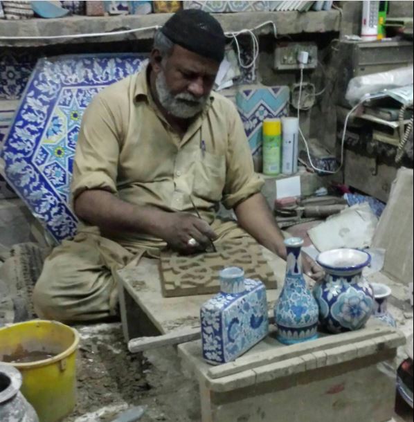 The skill for creating blue pottery, also known as kashi work, was introduced centuries ago by local artisans, whose craft derived influences from Persia, Central Asia and the Mongols. Over a period of centuries, Kashi work in Multan developed its own unique, indigenous style.